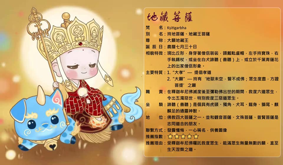 叢林消息 【地藏菩薩 簡歷】 2021-09-05 字級: 小 中 大 大願地藏王菩薩的大願到底多大? 他的座騎又是什麼? 孝道跟地藏菩薩有關係? 國際青年發展小組的青年集體創作 地藏菩薩簡歷報你知 返回上一頁