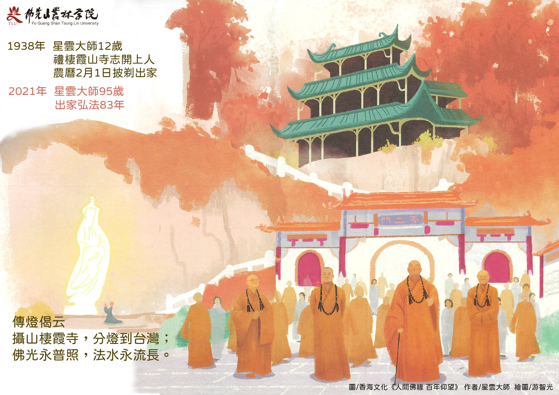 叢林消息 【星雲大師出家紀念日】 2021-03-13 字級: 小 中 大 1938年農曆2月1日 星雲大師出家。 2021年的今天,星雲大師95歲,出家弘法83年。 一直很喜歡「接心」這個詞,師父上人 星雲大師平等、慈眼示眾生,他從來不需要我們為他「接足」,再忙都不忘來佛學院,看看我們,幫我們加油打氣!感謝有您,應允了法身慧命,從此生命喜獲得度的慈航。誓願,以心印心,師心己心! 心懷度眾慈悲願,身似法海不繫舟; 問我一生何所求,平安幸福照五洲。 承師所願,行師所行! 返回上一頁