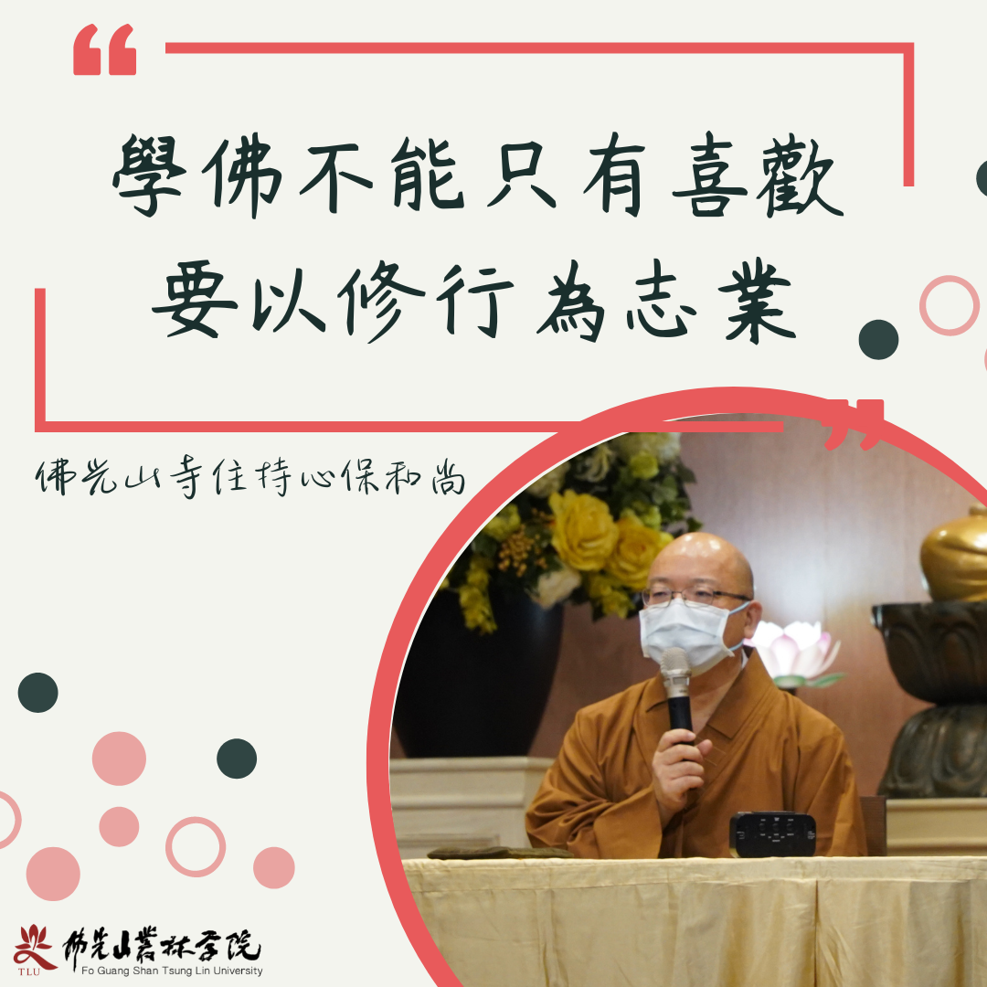叢林消息 【發現智慧的來源 修行學習常精進】 2022-12-18 字級: 小 中 大 住持心保和尚跟全院師生接心座談。 充滿智慧和佛法的問答~讓我們對於修道更堅定及發願精進 接心問答 Q 輪迴是險路,如果這一世不能圓滿,我如何知道,下一次還能回到佛道? A 有菩提心很重要,師父上人和單國璽樞機主教曾談到,如果我今天生在歐洲,就是一位神父。生在中國就是和尚。只要有菩提心,都可以成就。學佛很實際,你所學的,只是你想的,但是實際狀況可能完全不同。佛教講如實了知,就是要了解實際狀況。有菩提心就不用擔心。 Q 如何訓練思惟,常常坐在電腦前面,論文卻寫不出來,甚至邏輯不對,做事也不容易成功 A 豎窮三際,橫遍十方。我生已盡,梵行已立,不受後有。訓練思惟,就是讀論,有問有答,設立主客,問答決疑。論:要產生疑點,找到解決方法。找到以前人家沒有找到,但是論文還是要記得找指導老師。 Q 工作時,做事不如法,主管常說要慚愧、要有智慧?應該要如何慚愧、有智慧? A 勤能補拙,別人做一次,我就做兩次、三次,多做幾次就會,也要懂得問。學問。不學就問。 Q 日常生活中,很多事情需要用瑣碎的時間來處理。好像和禪宗,走路就走路,就有點矛盾 A 吃飯可以想、走路可以想。但吃飯要專心吃飯、走路專心走路,專心要用修行的角度來看。我們很多報告要做、要寫,站在寫報告的立場來想,也沒有錯。 保和尚以〈普賢警眾偈〉慈悲勉勵同學,時間有限生命無常,要以修行為志業,把握在學院的學習機會,面對境界考驗要遇險不亂、往好處想,更保有成佛的決心,將福德用在修行學佛上,才能盡未來際發菩提心、行菩薩道,使修行路走得更長遠。 返回上一頁
